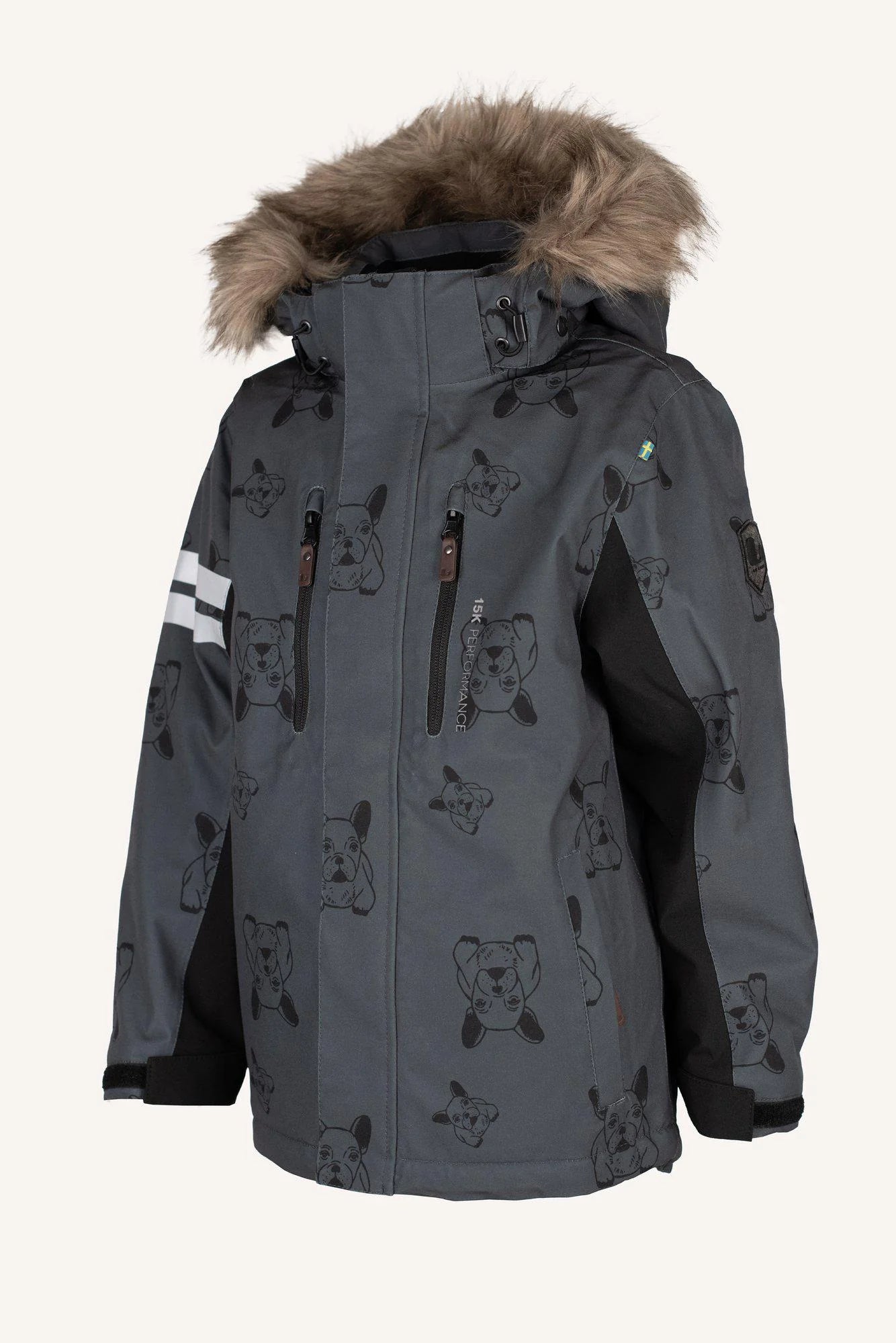 Colden vetrarúlpan er okkar allra sveigjanlegasta og þægilegasta af öllum úlpunum. Hún er gerð úr teygjanlegu og mjúku efni með hlýrri og góðu flísfóðri að innan. Virkilega góð vatnsheldni og öndun sem gerir börnum kleift að leika sér í öllum veðrum án þess að verða of heitt. Úlpan er með snjóvörn um mittið sem er stillanlegt og eru ermarnar einnig stillanlegar. Tveir hliðar- og brjóstvasar ásamt góðu endurskini. Hettan er stillanleg og má taka af líka. Að sjálfsögðu er feldurinn gervi.